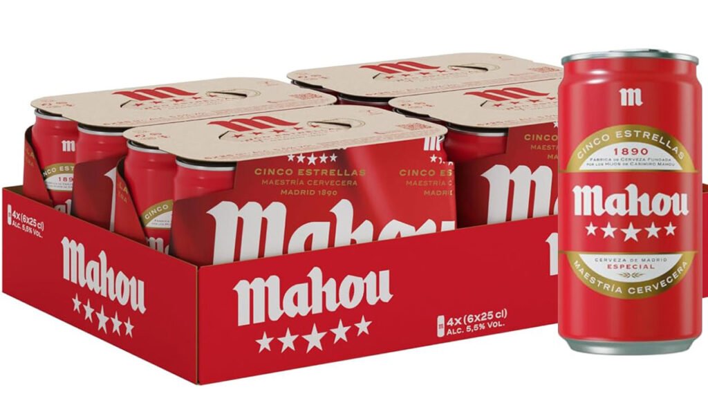 Chollo Pack de 24 latas de cerveza Mahou 5 Estrellas de 25 cl por sólo 12,61€ ¡0,53€ cada una!