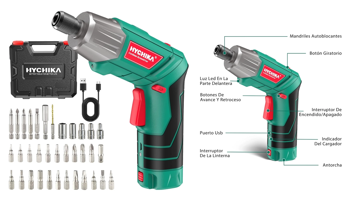 Chollo Destornillador eléctrico inalámbrico Hychika de 6 Nm con maletín y 35 accesorios por sólo 17,84€ (-35%)